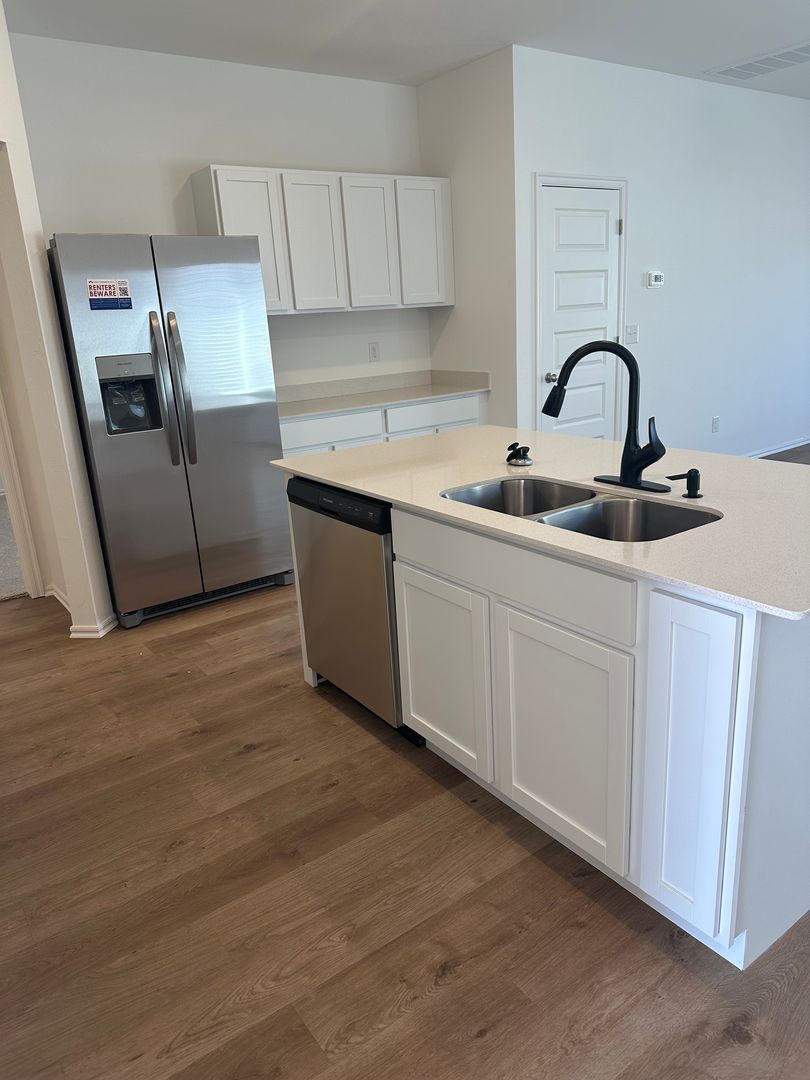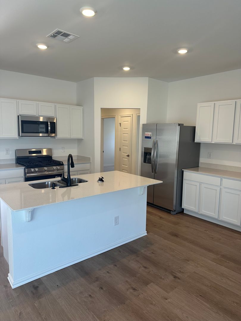 kitchen island, and a spacious pantry. Luxury vinyl plank flooring adds a touch of elegance