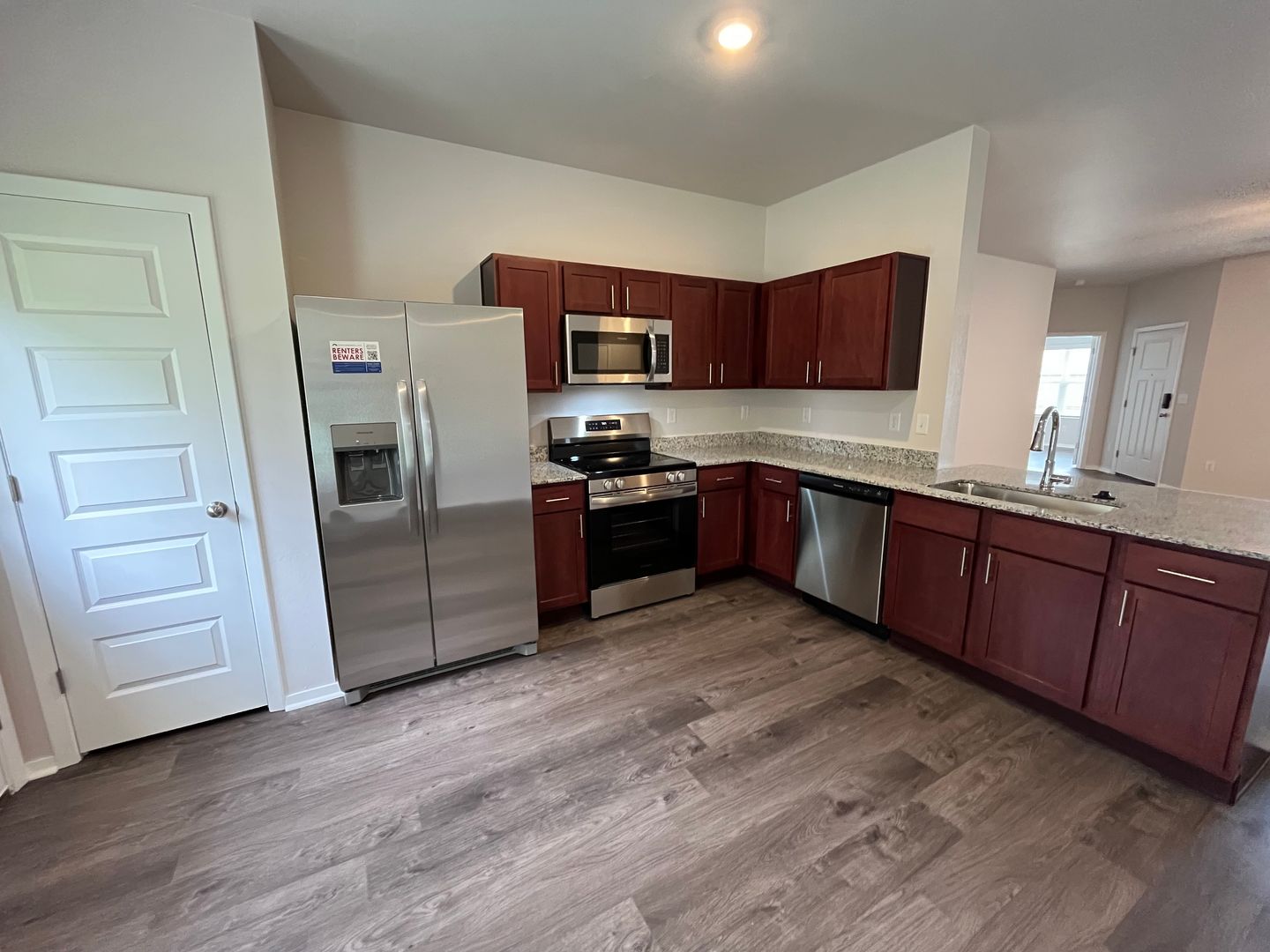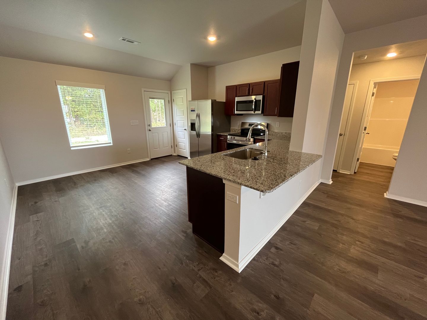 and sleek granite countertops. The home features luxury vinyl plank flooring throughout, adding a