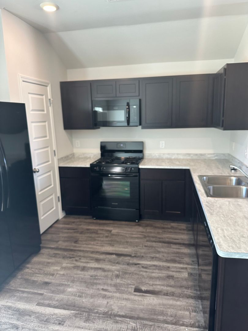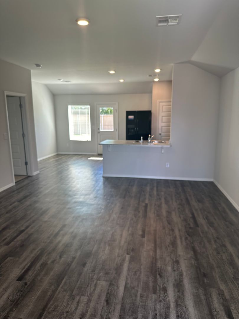 This modern home features an open concept layout, luxury vinyl plank flooring, and stainless steel appliances in the kitchen.