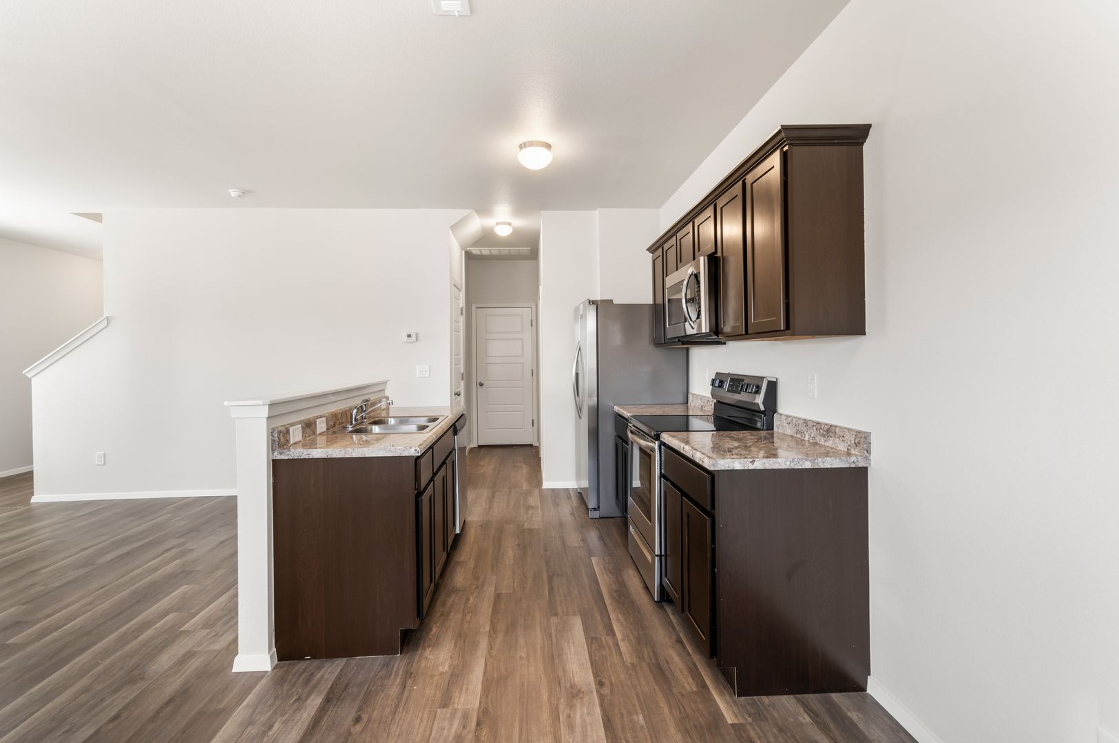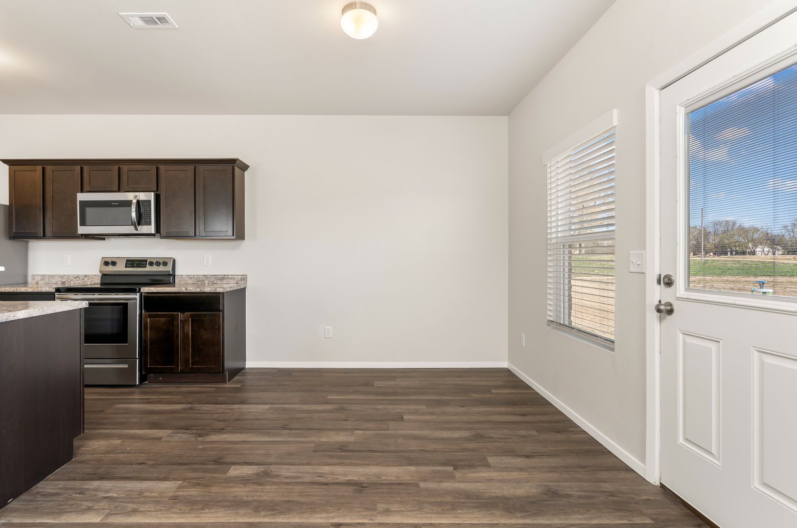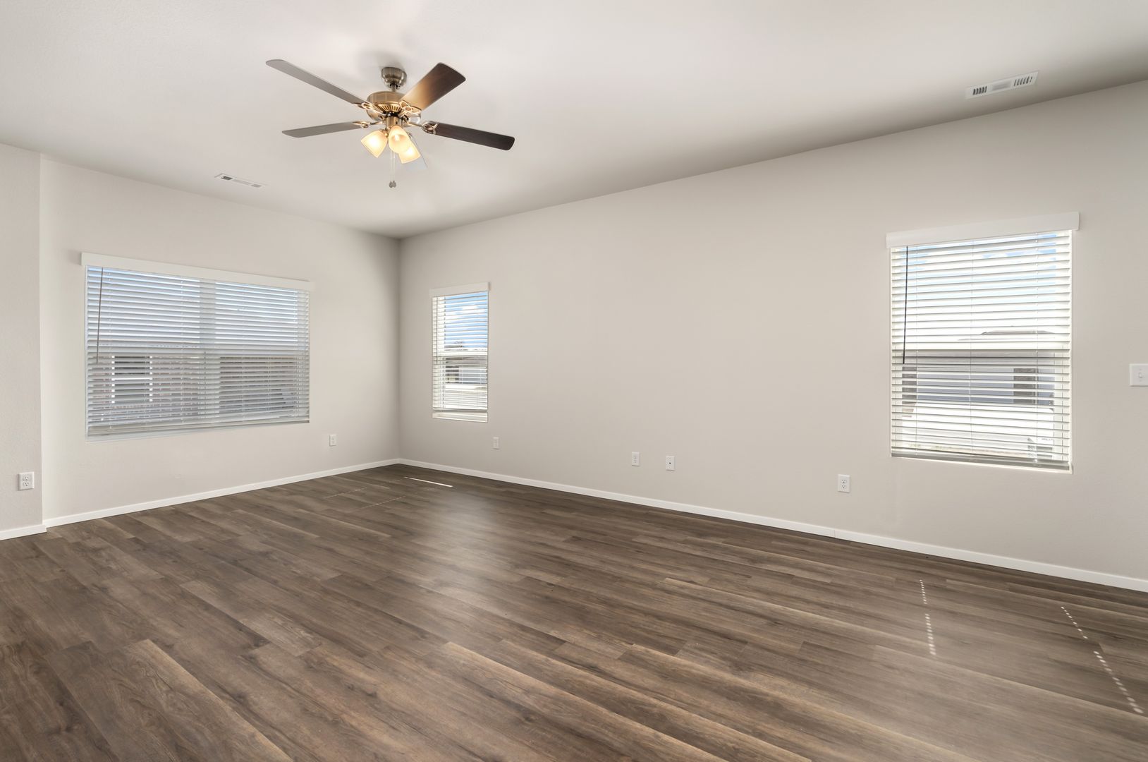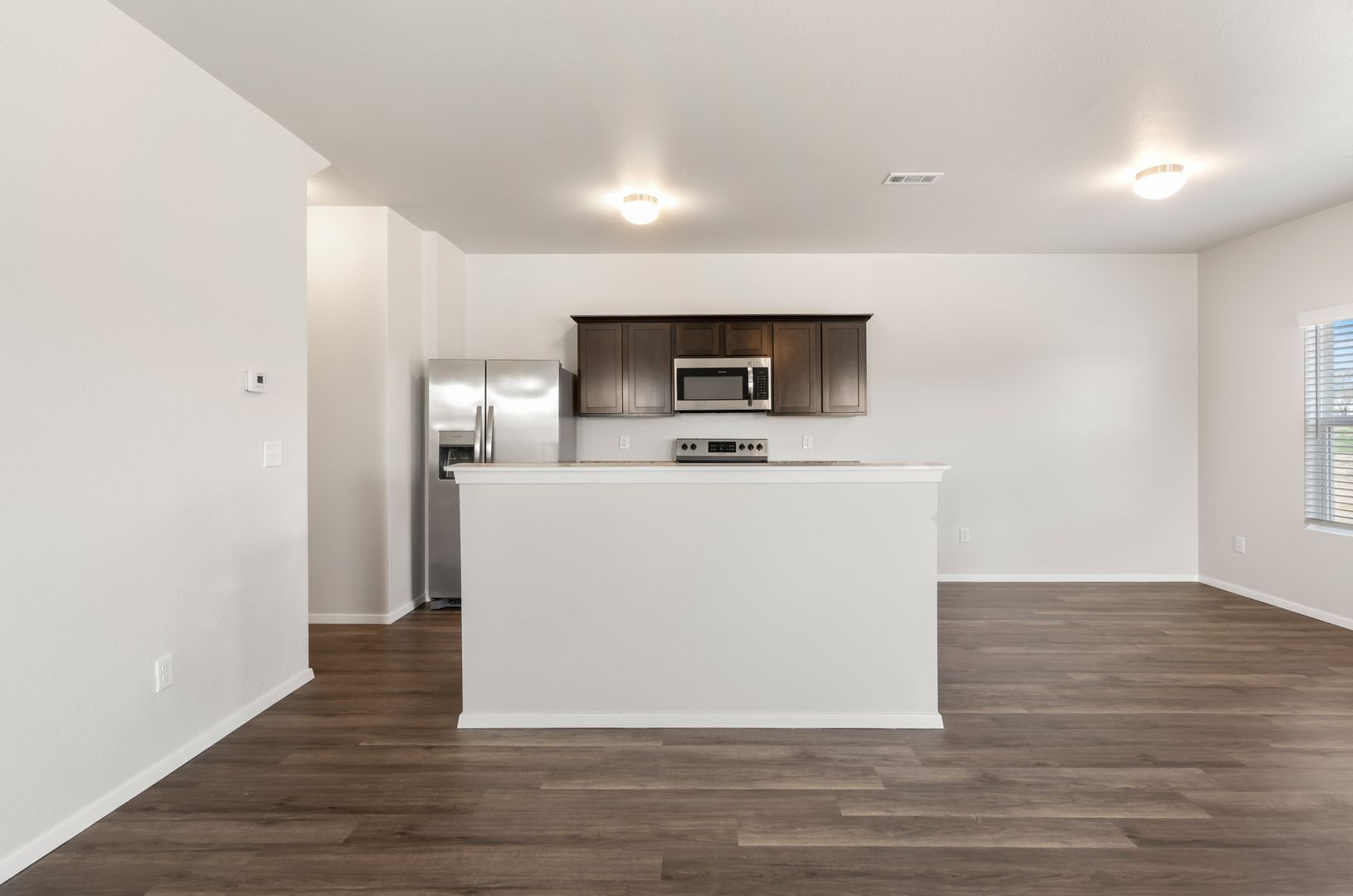 This modern home boasts an open concept layout, luxury vinyl plank flooring, stainless steel appliances, and ceiling fans throughout.