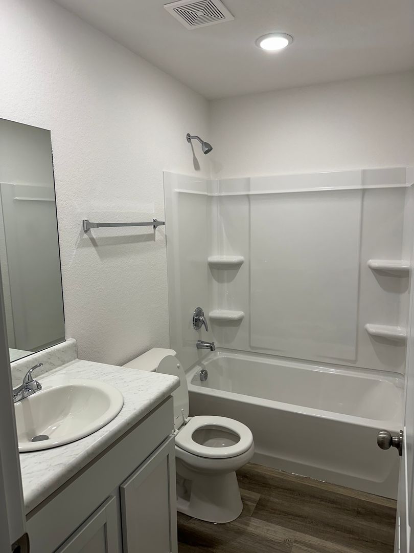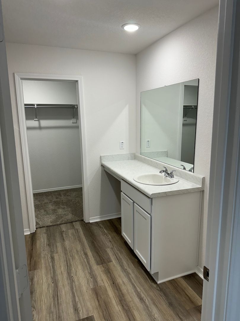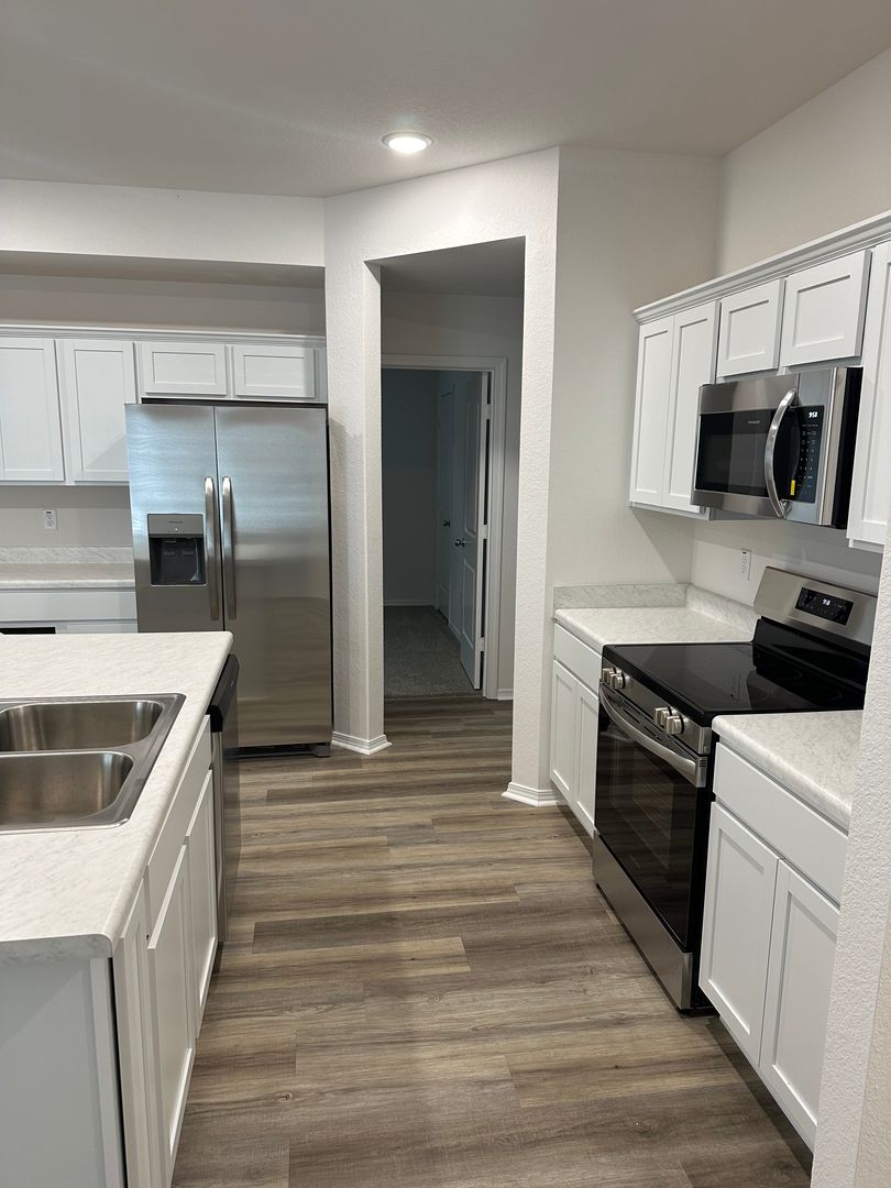 This stunning three bedroom, two bathroom home boasts luxury vinyl plank flooring, an open concept layout, and a spacious primary suite.