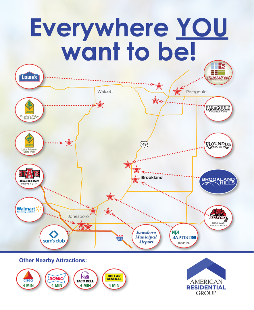 Brookland Hills community is conveniently located off US Bus- 49, minutes from Brookland Schools.