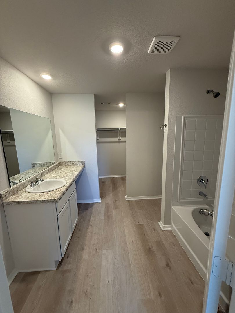 features a primary suite with a walk-in closet, offering ample space for your belongings. Each room
