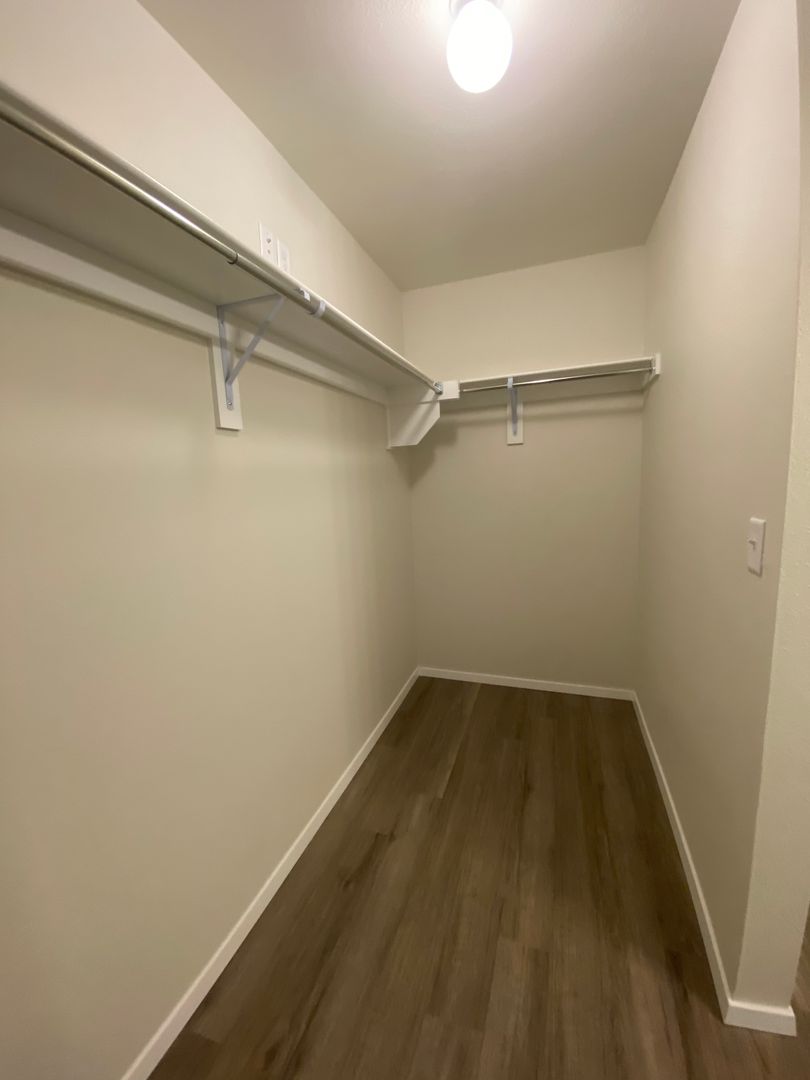 The primary suite has a spacious walk-in closet and private bath.